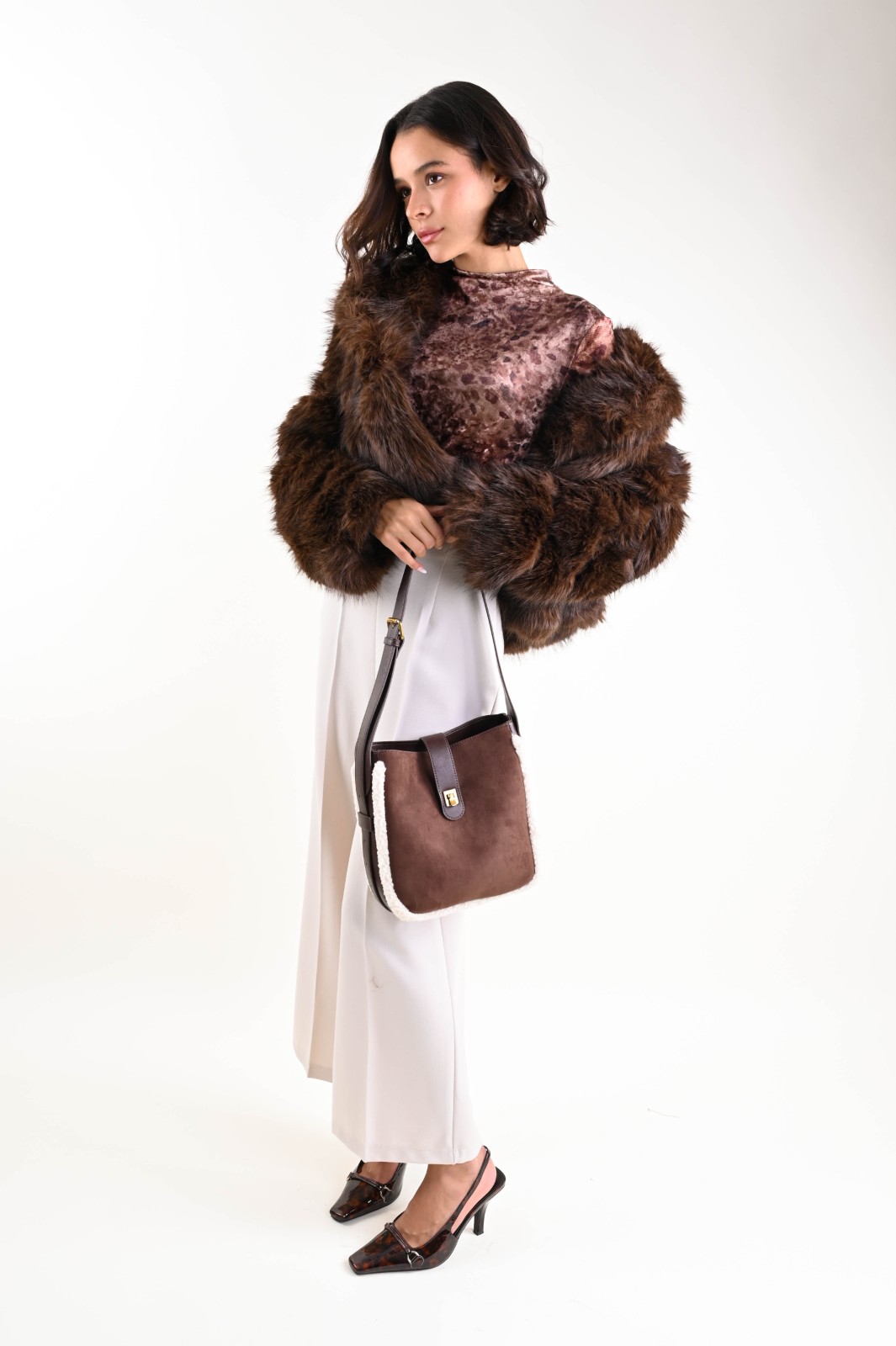 BORSA A TRACOLLA IN SUEDE CON BORDI IN SHEARLING