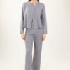 Pantaloni in maglia, gamba dritta, con piega sul davanti. Elasticizzati, con coulisse e nastrino regolabile in vita.