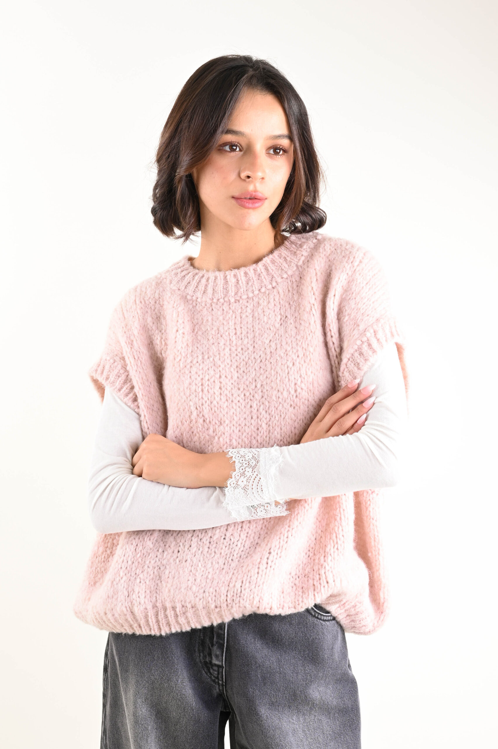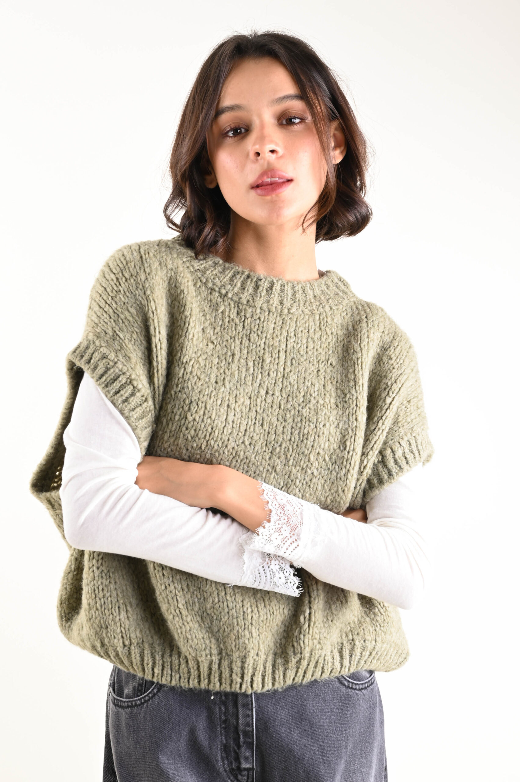 Strickweste mit lockerer Passform und leicht flauschigem Griff aus warmem, weichem Garn. Der klassische Rundhalsausschnitt und die Rippbündchen an Kragen, Armausschnitten und Saum verleihen dem schlichten Design Struktur. Ein vielseitiges und modernes Kleidungsstück, perfekt zum Kombinieren mit Hemden oder Rollkragenpullovern für elegante und bequeme Looks. Ideal, um Alltagsoutfits einen modernen Touch zu verleihen – von Myastreet.