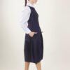 Abito senza maniche tessuto glitterato, strutturato con linea ad ovetto e balza sul fondo.