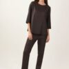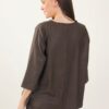 Maglia a fantasia principe di Galles con manica a 3/4, scollo rotondo, taglio svasato, vestibilità morbida.