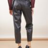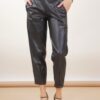 Pantaloni in ecopelle con elastico in vita, pinces sulle caviglie e taschino dietro.