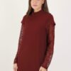 Abito con maniche in pizzo, lunghezza sopra il ginocchio.