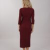 Abito lungo con drappeggi e apertura nella parte superiore, manica a 3/4, spacco. Vestibilità ridotta.