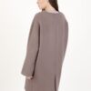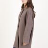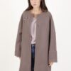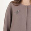 Cappotto con spilla decorativa, lunghezza al ginocchio. Scollo rotondo.