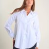 Essential, elegant und zeitlos: Das Damenhemd aus Baumwollpopeline von Myastreet ist ein Must-have für jede Garderobe. Die klare Linie mit klassischem Kragen, hohen Manschetten und Ton-in-Ton-Knöpfen betont die Figur mit Schlichtheit und Raffinesse. Die leicht übergroße Passform macht es perfekt für formelle Looks, kombiniert mit Blazer und Anzughose, sowie für lässigere Outfits mit Jeans und Sneakers.