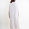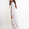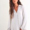 Langes Tunikakleid aus fließender Viskose, das sich mühelos Ihren Bewegungen anpasst. Der klassische Kragen und der V-Ausschnitt sorgen für einen klaren, harmonischen Look, während die langen Ärmel mit Manschetten dem Design eine raffinierte Note verleihen. Die lockere, aber fließende Silhouette macht es perfekt für anspruchsvolle und bequeme Looks und passt hervorragend zu flachen Sandalen oder Stiefeln. Ein vielseitiges Modell für moderne und zugleich zeitlose Weiblichkeit.