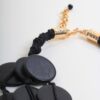 HALSKETTE MIT MATTSCHWARZEN RUNDEN ELEMENTEN UND METALLEINEN