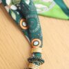 Diese exklusive Halskette kombiniert die Weichheit eines bedruckten Satinschals mit dem Glanz von goldfarbenem Metall und Kristallakzenten. Ein originelles und raffiniertes Accessoire, das jedem Outfit einen Hauch zeitgenössischer Eleganz verleiht. Die goldfarbenen Ringe und funkelnden Steine erzeugen ein Spiel aus Texturen, das dem Dekolleté Licht und Bewegung verleiht.