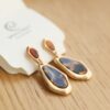 Hängende Ohrringe mit geflecktem Stein und Goldrahmen