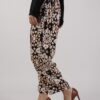 Pantalone culotte con pinces a fantasia. Vestibilità abbondante.