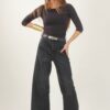 Maglia aderente con maniche a 3/4 e scollo rotondo in morbida viscosa. Elasticizzata.