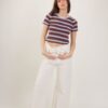 T-shirt crop a righe orizzontali, dal taglio corto. Un classico rivisitato in chiave young e femminile.