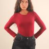 Langärmliger Body mit Rundhalsausschnitt aus Viskose, gefertigt aus einem weichen, dehnbaren Stoff, der sich dem Körper anschmiegt. Ein vielseitiges Basic-Modell, perfekt unter Blazern, Cardigans oder hoch taillierten Röcken für einen raffinierten und femininen Look.