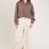 Caratterizzata da colletto classico, manica lunga, taschino applicato e chiusura con bottoni frontali. Il taglio corto e il design raffinato la rendono ideale per outfit eleganti ma versatili, perfetta da abbinare a pantaloni a vita alta o gonne.