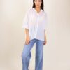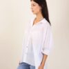 Camicia donna in leggero voile di cotone, dallo stile essenziale e arioso. Il taglio over dona comfort e leggerezza, mentre le maniche a 3/4 e l’abbottonatura frontale con bottoni effetto madreperla completano il look. Perfetta da indossare aperta sopra top e canotte oppure infilata nei jeans per un outfit casual e fresco, ideale per la primavera e l’estate.