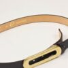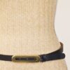 Cintura in pelle con maxi fibbia allungata, regolabile.