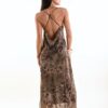 LANGES BEDRUCKTES KLEID MIT GEKREUZTEN TRÄGERN UND WEICHEM AUSSCHNITT