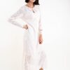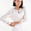 Dieses Damenkleid aus leichter Spitze mit Ton-in-Ton-Muster ist ein elegantes und raffiniertes Stück, das Weiblichkeit und Stil vereint. Die geraffte Vorderseite und der runde Ausschnitt betonen die Silhouette mit einem raffinierten Touch, während die langen Ärmel zeitlose Eleganz verleihen. Perfekt für elegante Accessoires bei Feierlichkeiten, eleganten Abenden oder besonderen Anlässen – dieses vielseitige Kleid verleiht jedem Outfit Persönlichkeit und Charme.