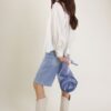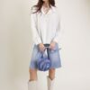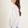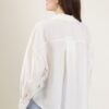 Camicia in tessuto effetto crepe, caratterizzata a una linea morbida, con laccetto da annodare sullo scollo a V. Colletto classico e polsini alti con bottone. Chiusura frontale con bottoni in tinta.