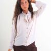 Eine feminine Bluse mit fließendem und raffiniertem Design. Die raffinierte Schleife am Halsausschnitt und leichte Falten an den Schultern betonen die Silhouette. Kontrastierende Metallknöpfe setzen ein markantes und modernes Detail. Die langen Ärmel und die lockere Passform machen sie ideal für den Büroalltag und formelle Anlässe. Ein vielseitiges Kleidungsstück, perfekt zu Hosen oder Röcken für einen raffinierten und unverwechselbaren Look.