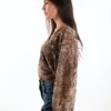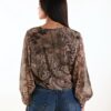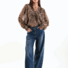 Bedruckte Bluse mit V-Ausschnitt. Das Design schmeichelt der Figur mit einer weichen und vielseitigen Passform und passt ideal zu eleganten Hosen und lässigen Röcken. Perfekt für Arbeit, Freizeit oder einen eleganten Tageslook – diese Bluse ist ein unverzichtbares Kleidungsstück für jede moderne Garderobe.