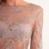 Dieses langärmlige Damentop aus transparenter Spitze ist perfekt für sinnliche und raffinierte Looks. Die leichte Spitze mit floralem Motiv sorgt für einen eleganten und modernen transparenten Effekt. Ideal über einem Top oder Bralette für ein Statement-Outfit oder unter Blazern und Jacken für einen Hauch von raffinierter Weiblichkeit. Die verarbeiteten Kanten und der Zweite-Haut-Effekt betonen die Silhouette stilvoll.