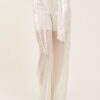 Pantaloni a palazzo con paillettes e cintura in vita. Foderati fino a metà coscia.