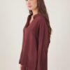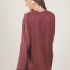 Camicia satinata, con colletto alla coreana. Più lunga davanti e più corta dietro. Bottoncini a chiusura.