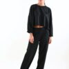 Kurzes Langarm-Sweatshirt aus weicher Baumwolle. Es besticht durch ein farblich abgestimmtes, leicht ausgefranstes Detail auf der linken Brust. Der Style besticht durch eine lockere Passform, abgerundete Kanten und weiche Bündchen. Perfekt für einen lässigen, modernen Look.