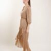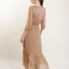 Abito in seta con scollo a V plissettato con gonna incrociata e volant.