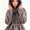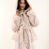 Öko-Pelzjacke mit Gürtel und Schmuckknopf