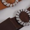 Cintura elastica con fibbia rotonda con chiusura frontale regolabile. La fibbia è decorata con strass.