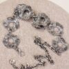 Cintura a catena con maglie circolari. Chiusura a moschettone.