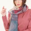 Sciarpa fantasia in pura viscosa con frange, calda e soffice al tatto.