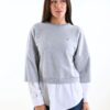 Damen-Oversize-Sweatshirt von Myastreet mit Hemdeeinsätzen an Saum und Ärmeln für einen modernen und raffinierten Doppelteil-Effekt. Aus weicher Baumwolle gefertigt, vereint es Komfort und Stil. Perfekt für lässig-schicke Looks, lässt sich dieses Sweatshirt problemlos mit Hosen oder Jeans kombinieren und wird zum Must-have der Saison. Ein vielseitiges Kleidungsstück, ideal für Freizeit, Reisen und Alltagsoutfits mit einem raffinierten Touch.