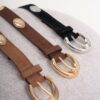 Wildledergürtel mit dekorativen Nieten, die seinen markanten, modernen Stil unterstreichen. Die Metallschnalle verleiht ihm einen Hauch von Glanz und Eleganz und rundet lässige und urbane Looks perfekt ab. Ein vielseitiges Accessoire, das Hosen, Röcke und Kleider aufwertet und jedem Outfit Charakter und Originalität verleiht.