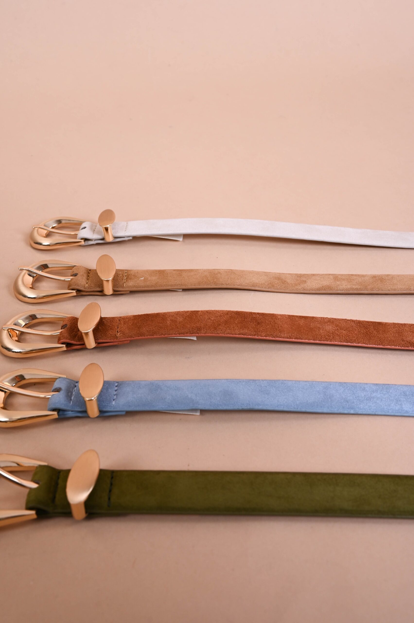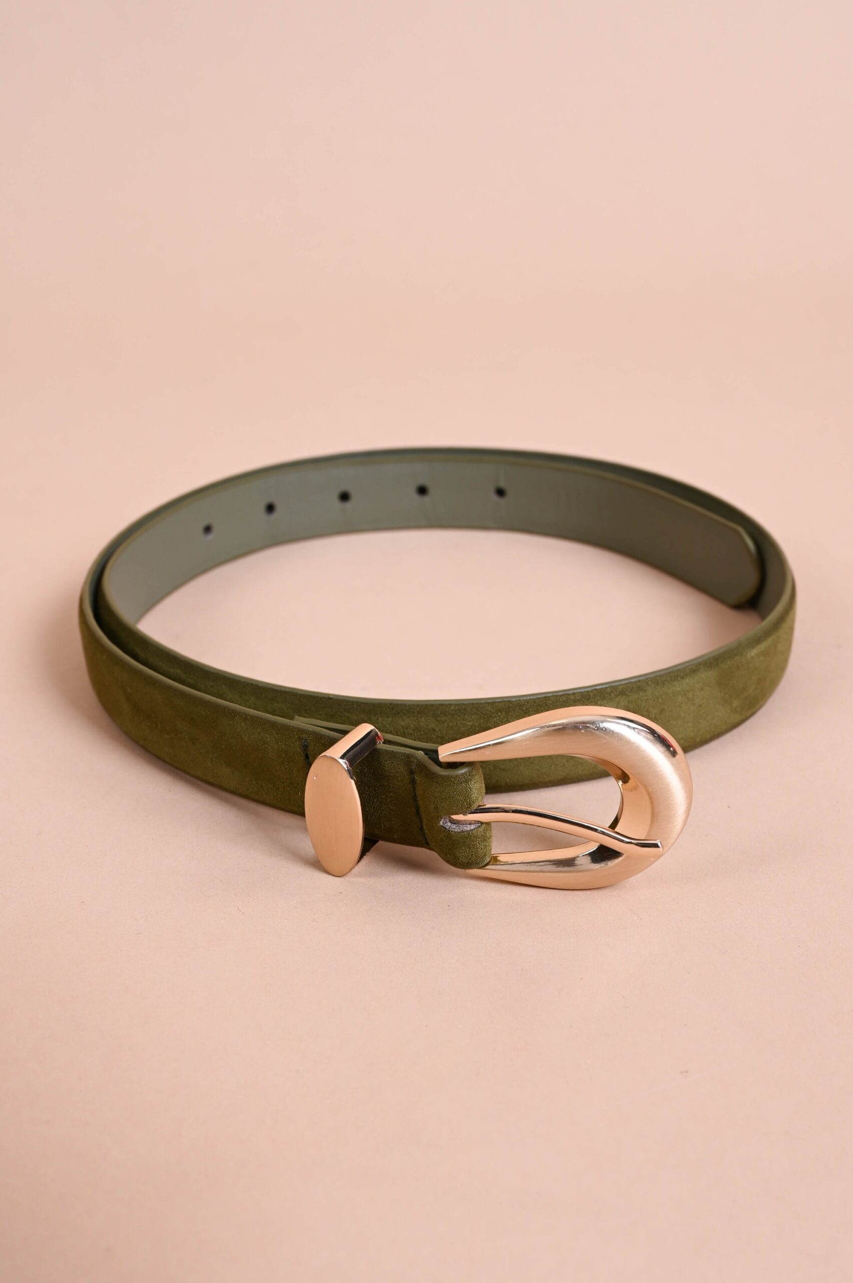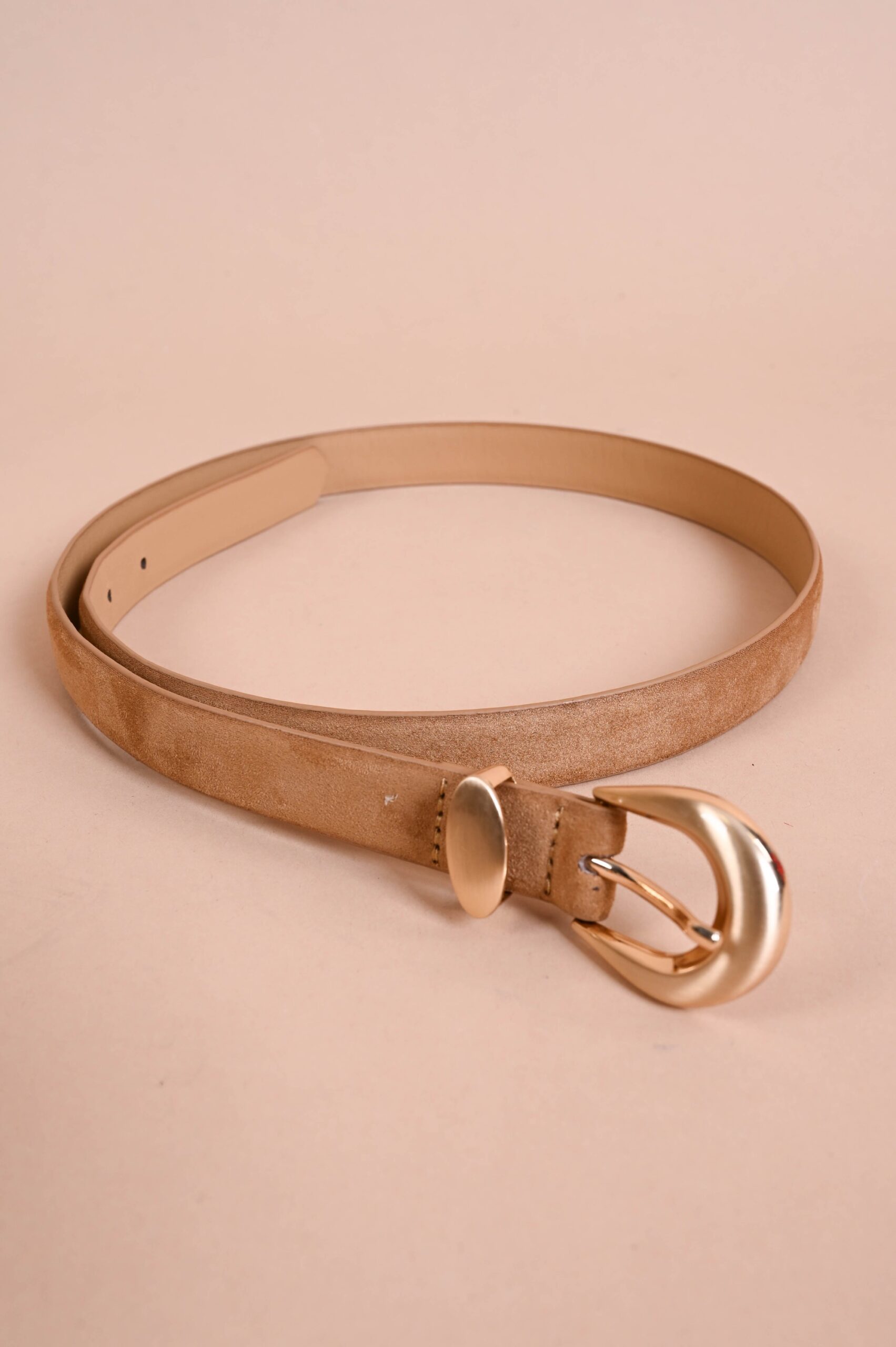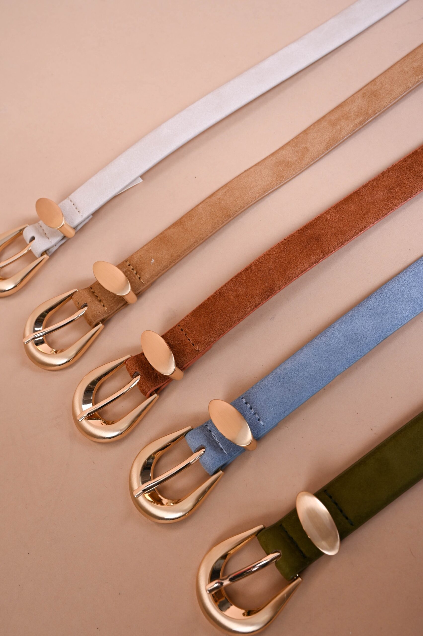 Ein schmaler, taillierter Ledergürtel, der die Silhouette elegant und dezent betont. Die minimalistische Goldschnalle setzt einen raffinierten Akzent und macht ihn zum idealen Accessoire für Alltagsoutfits oder elegantere Kombinationen. Vielseitig und zeitlos, definiert dieser Gürtel perfekt die Taille und unterstreicht feminine Looks mit einem klaren, modernen Stil.