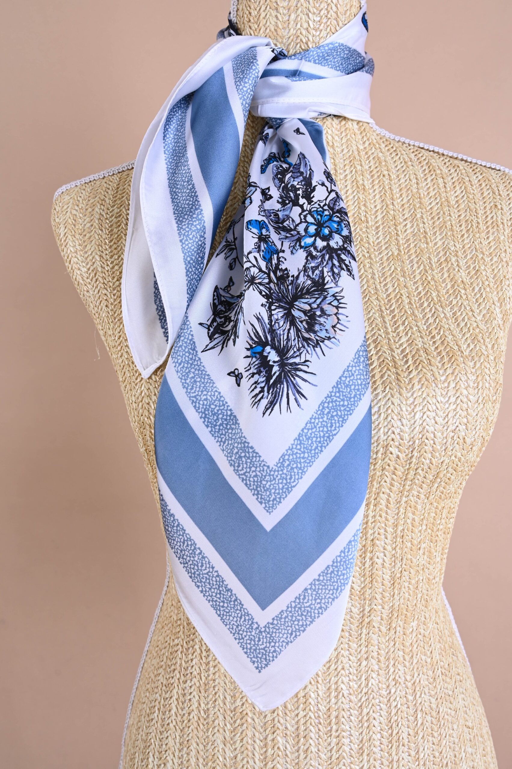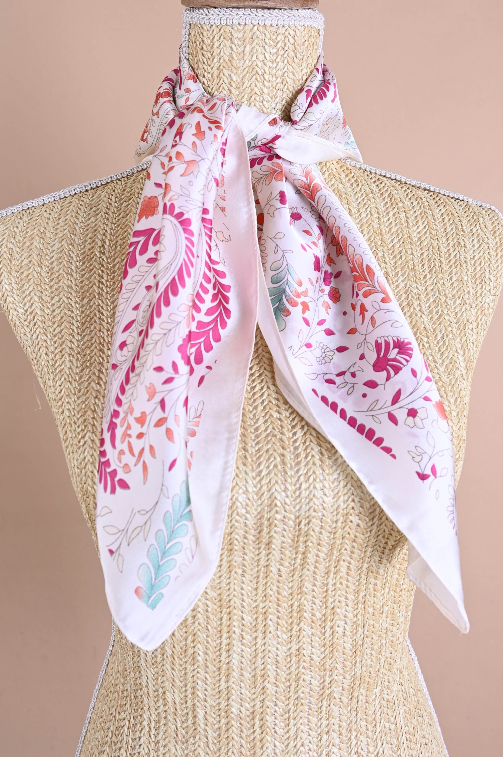 Gemusterter Schal aus leichtem, weichem Material, der jedes Outfit stilvoll ergänzt und aufwertet. Das dekorative Design verleiht ihm eine feminine und elegante Note und eignet sich perfekt für Alltagslooks und festliche Anlässe. Vielseitig kombinierbar, kann er um den Hals, im Haar, an einer Tasche oder als dekoratives Accessoire getragen werden.