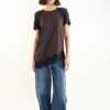 Das T-Shirt mit Spitzeneinsätzen und gepolsterten Schultern von Myastreet vereint Romantik und Kühnheit in einem Stück, das die perfekte Balance zwischen Eleganz und Modernität schafft. Die Spitzeneinsätze verleihen einen raffinierten und femininen Touch, während die strukturierten Schultern die Silhouette betonen und einen markanten und modernen Look kreieren.