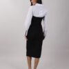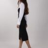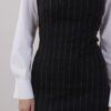 Abito elegante gessato aderente con dettagli in lurex senza spalline. Lunghezza sotto il ginocchio con spacco laterale e cerniera invisibile lungo la schiena.