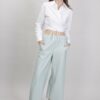 Pantalone morbido effetto pelle con vita elasticizzata e tasche inserite al fianco. Vestibilità regolare.
