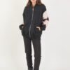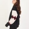 Bomber strutturato con maniche in misto lana a fantasia etnica, con zip a chiusura.