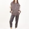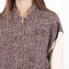 Bomber a girocollo, con maniche in pelle, polsini e spilla decorativa.