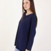 Maglia leggera scollo rotondo con polsi e fondo a costine. Cucitura in evidenza sulla schiena.