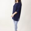 Maglia dal taglio oversize con maniche a 3/4 e polsi a costine. Presenta uno scollo rotondo e spacchetti sui lati.