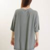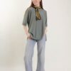 Maglia girocollo a maniche corte, linea pulita e fit comodo. Bordo a costine su fondo e maniche. Più corta davanti più lunga dietro.