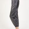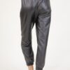 Pantalone jogger in ecopelle, con elastico in vita e polsini sul fondo.