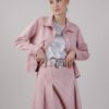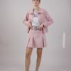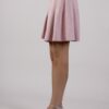 Minigonna a pieghe in tessuto camosciato con cinturina con fibbia a cuore in vita.