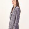 Giacca in ciniglia monopetto con bottone, taglio dritto.